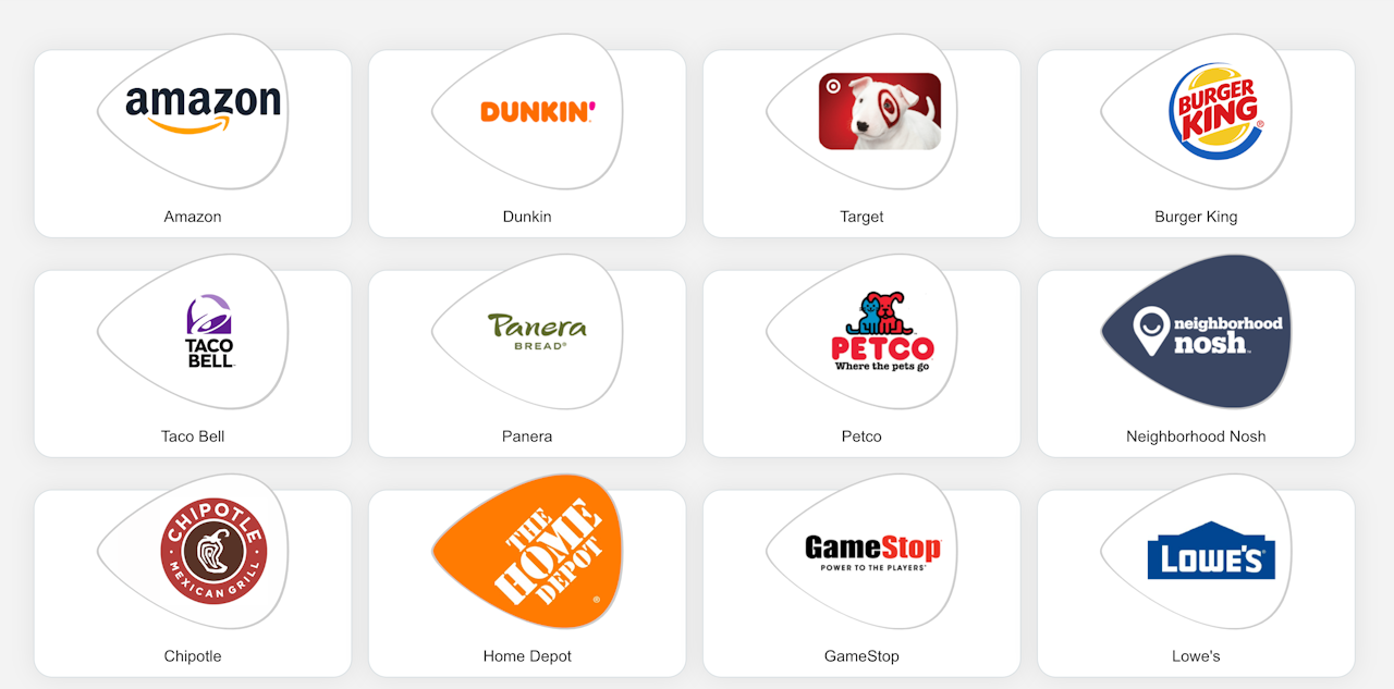 Choose from over 30k national and local merchants within the United States.