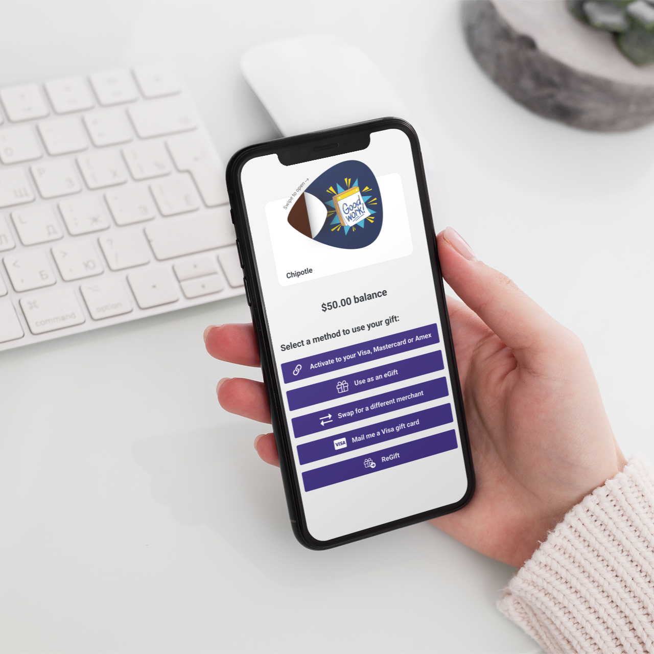 We also offer other ways to use your gift such as an eGift, swapping for another merchant, or getting a Visa gift card mailed to you.