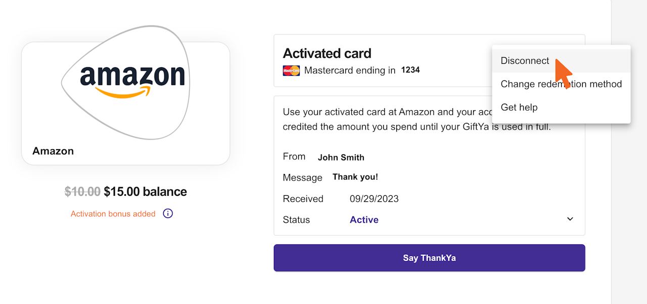Once you've disconnected your card, you can either link a new card to your gift or choose a different redemption option!