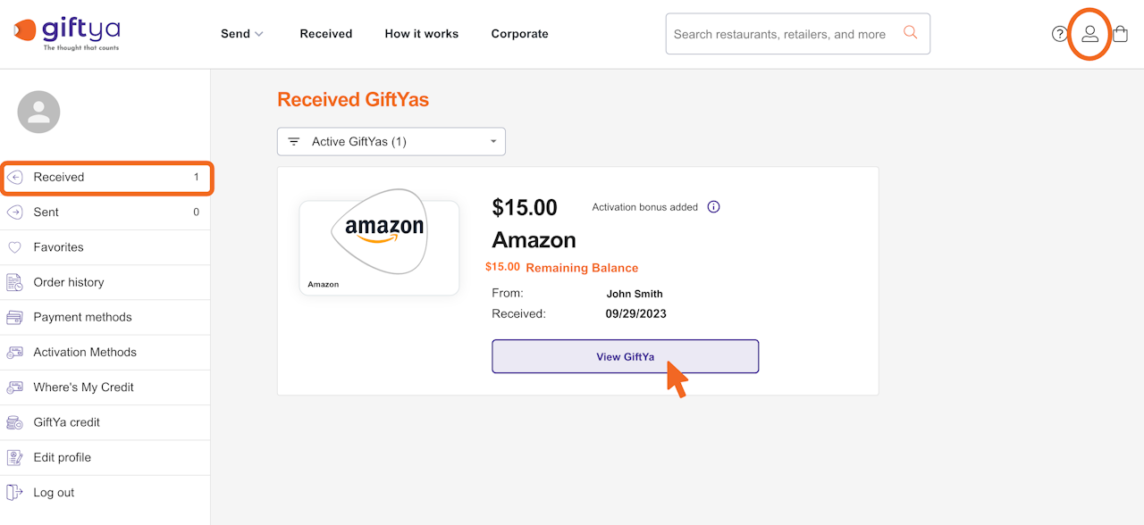 Sign in to your account and choose your GiftYa.