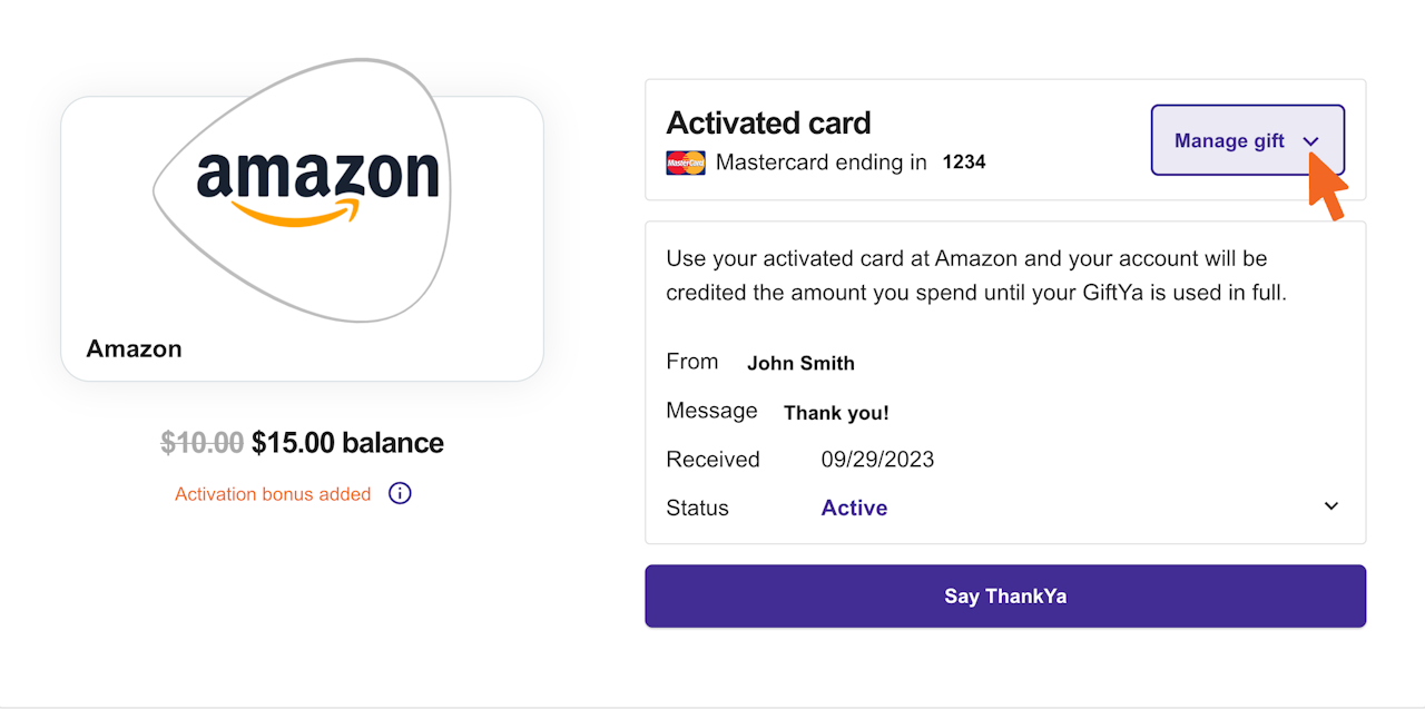 Click the dropdown menu labeled "Manage Gift."