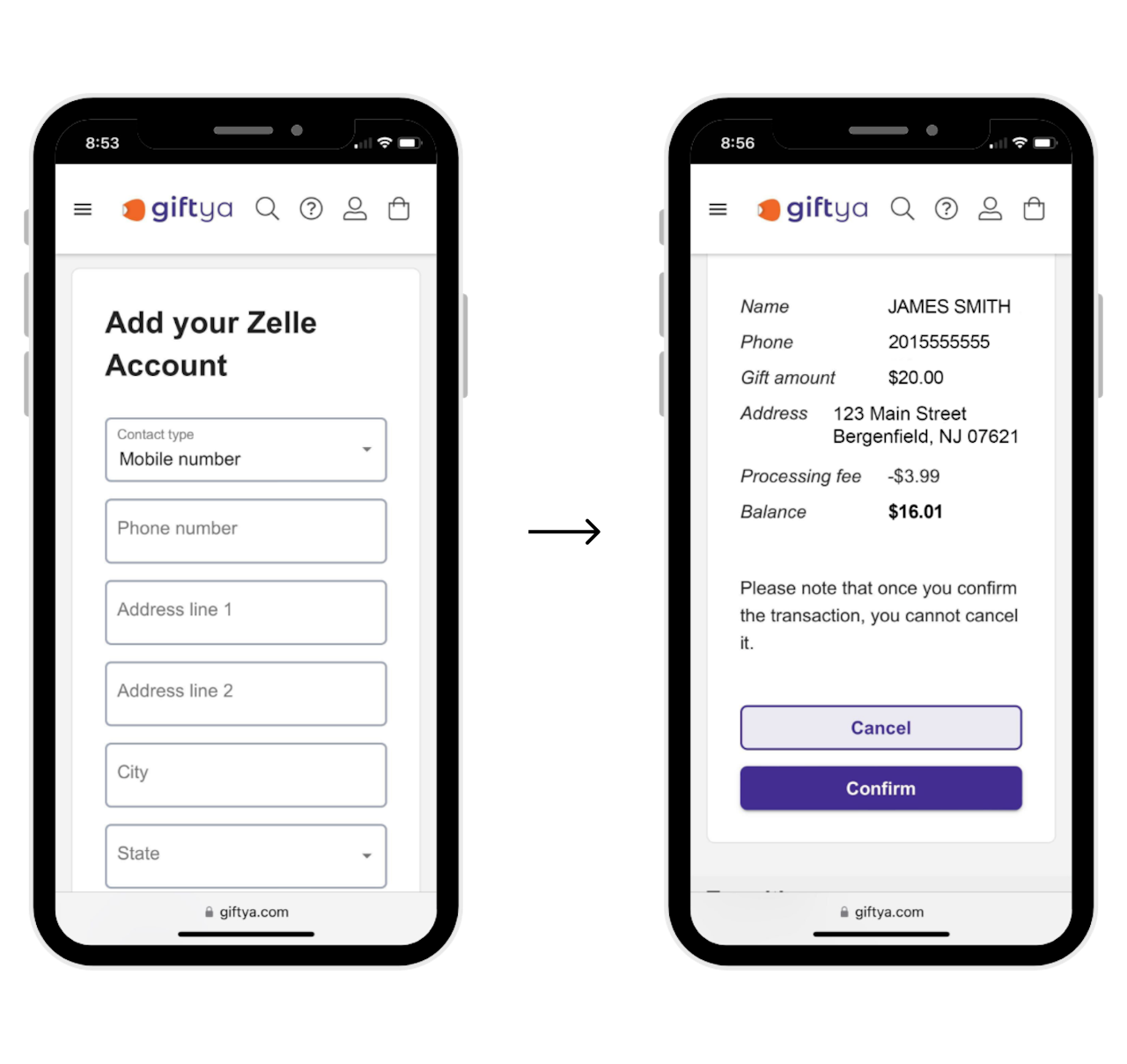 Transfer funds from your GiftYa directly to your bank account using Zelle®!