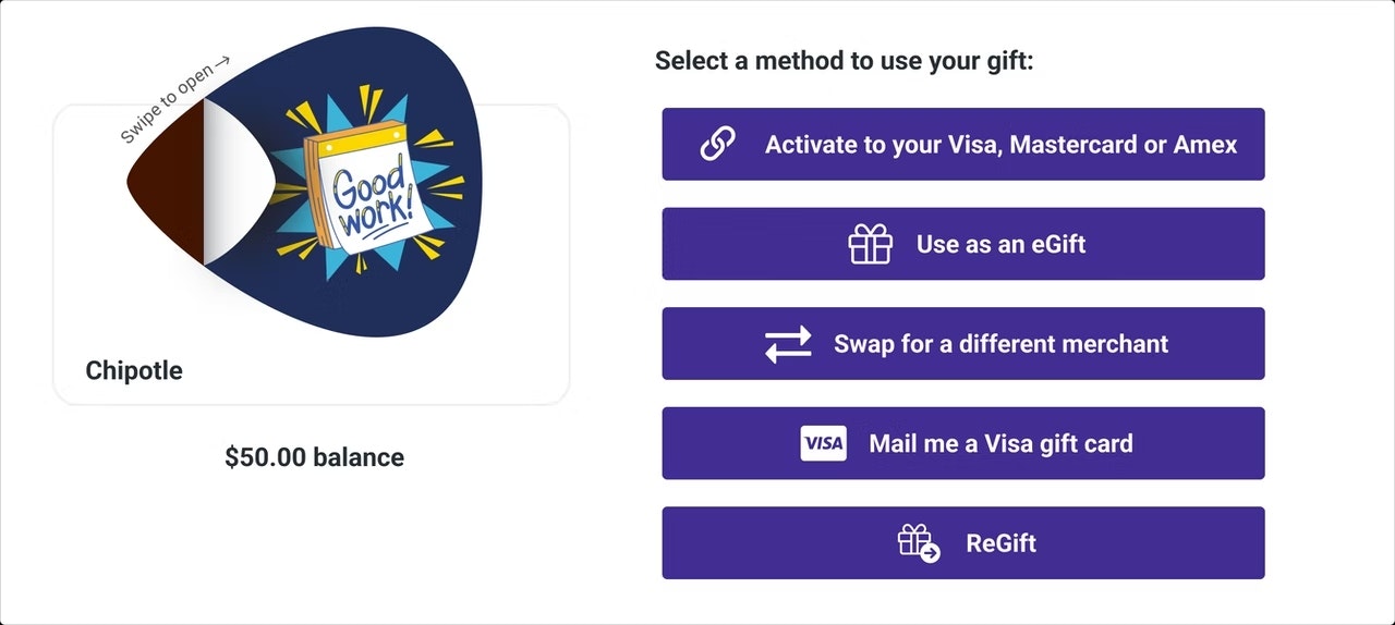 We also offer ways to use your gift that don't require you to Activate to your Visa, Mastercard, or Amex.